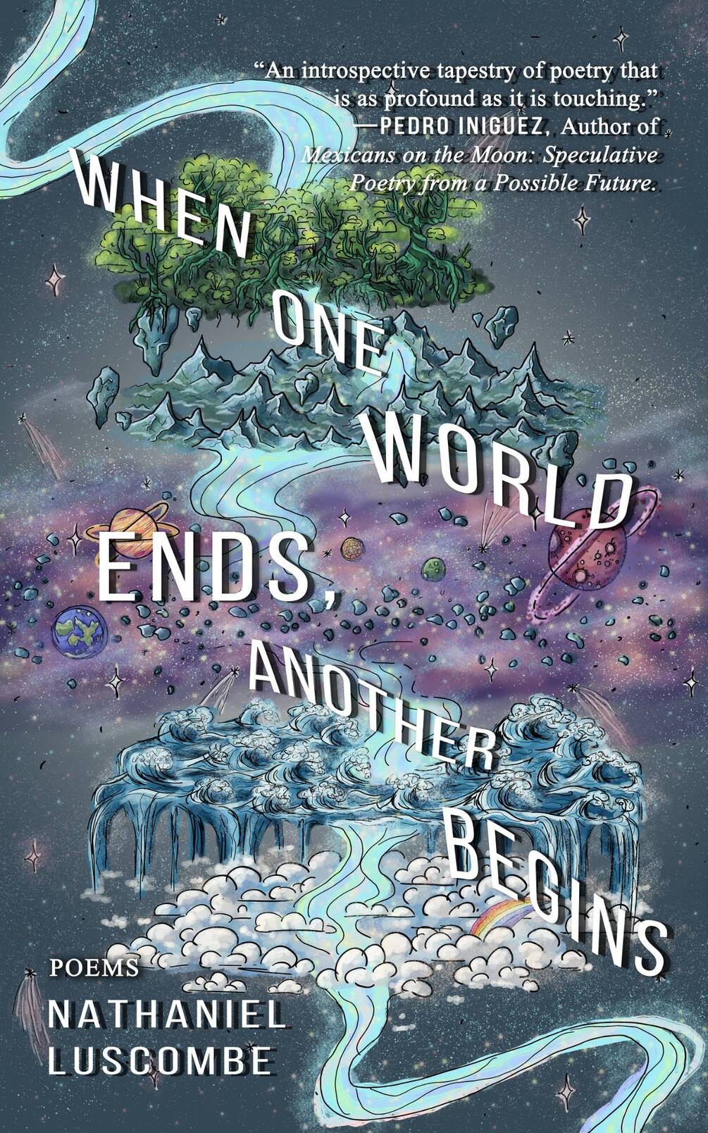 Nathaniel Luscombe is an author and publisher from Ontario, Canada. He’s known for his existential writing, weird mashups of speculative genres, and making everything cozy (even horror). His most popular work is his science-fantasy novella Moon Soul. When he’s not writing, he’s busy co-running Dragon Bone Publishing and Dragon Heart Press. When One World Ends, Another Begins is his debut poetry collection.